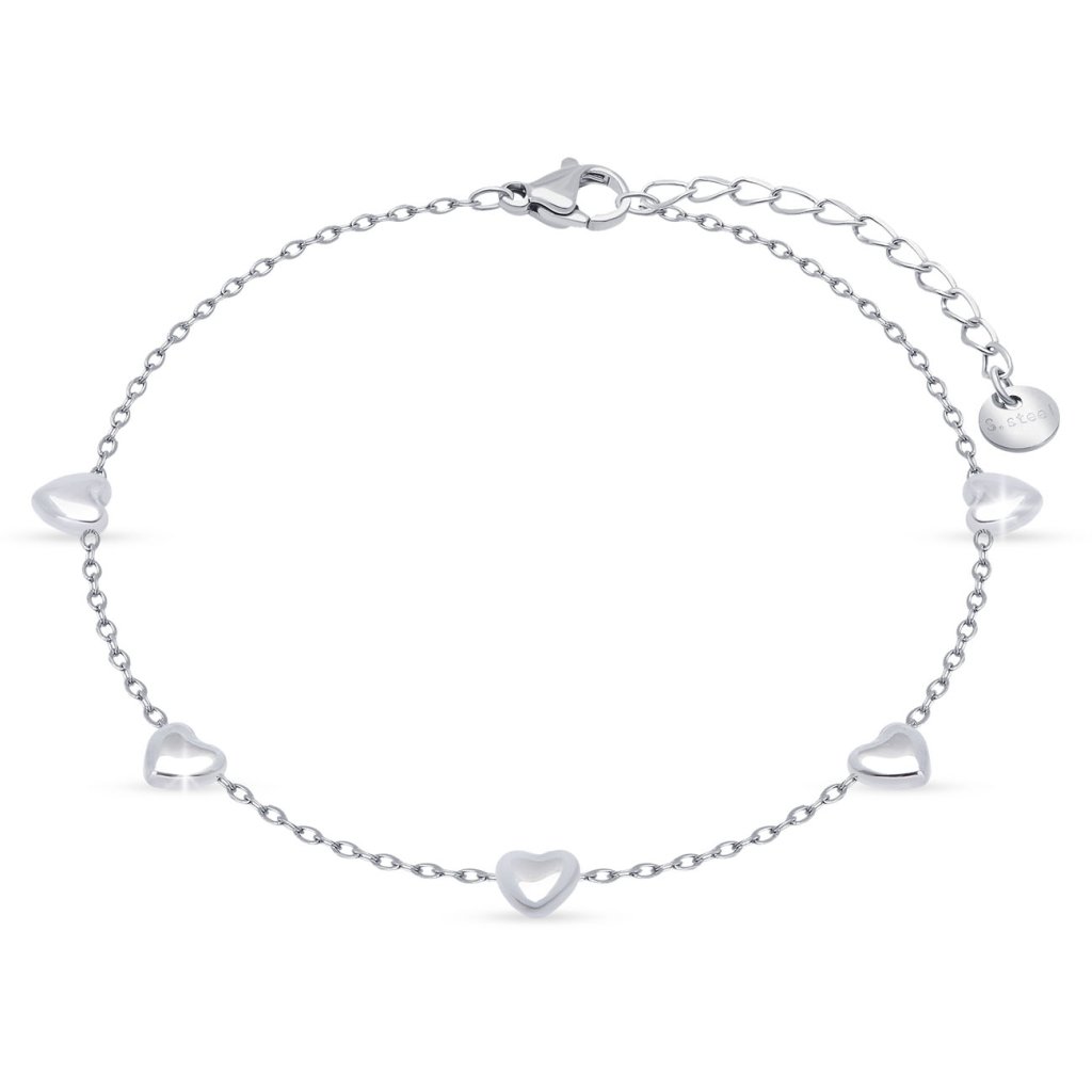 Finom Sebészeti acélból készült, 3 mm-es szívecskékkel díszített karkötő. Diszkréten kiegészíti megjelenését, alkalmas mindennapi viseletre. Pattintós záródás.