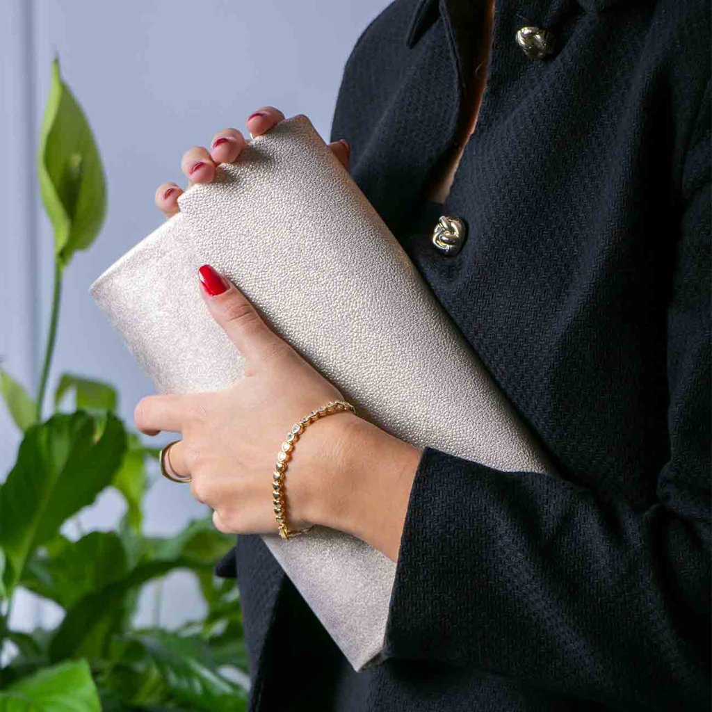 Finom és ragyogó karkötő, szívecske motívummal, tiszta cirkónia kövekkel kirakva, ideális ékszer a szerelem és a gyengédség kifejezésére. Az elegáns kidolgozás és a finom fény tökéletes kiegészítővé teszi romantikus pillanatokhoz, ünnepi eseményekhez és mindennapi viselethez. A karkötő luxus hatást kelt, miközben diszkrét marad – nagyszerű ajándék kivételes nőknek.