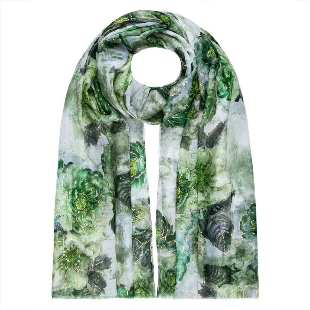 - Helyezze magát kényelembe, és nézzen ki stílusosan egy virágos sállal, aranyozott részletekkel. Ez a praktikus, mégis divatos darab 70% viszkóz és 30% selyem keverékéből készült, így hihetetlenül puha. Ez a sál nem csak nagyon elegáns megjelenést kölcsönöz Önnek, de extra védelmet is nyújt a hideg szél vagy a zord időjárás ellen. Akár a kedvenc kabátodra teríted, akár a nyakad köré tekered extra melegségért, nem fogod megbánni, hogy egy ilyen luxus darabba fektettél.