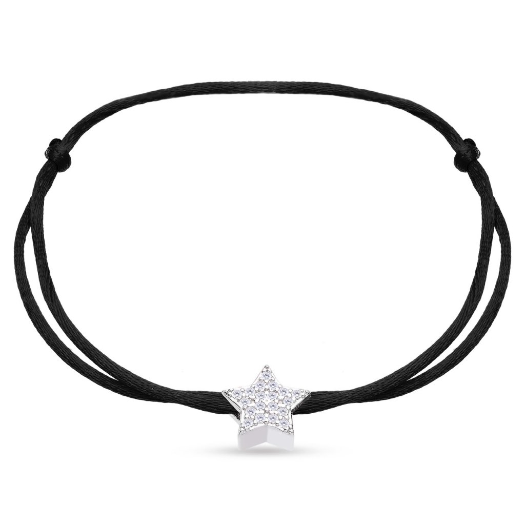 Stílusos kiegészítő egy csipetnyi varázslattal – ez a minimalista karkötő fekete textilzsinórt kombinál egy finom, csillag alakú medállal, mely Ag 925/1000 ezüstből készült, és csillogó, tiszta cirkóniákkal van díszítve. A csillag a remény, a vezetés és az erő szimbóluma – ideális mindennapi viseletre és személyes talizmánként is.