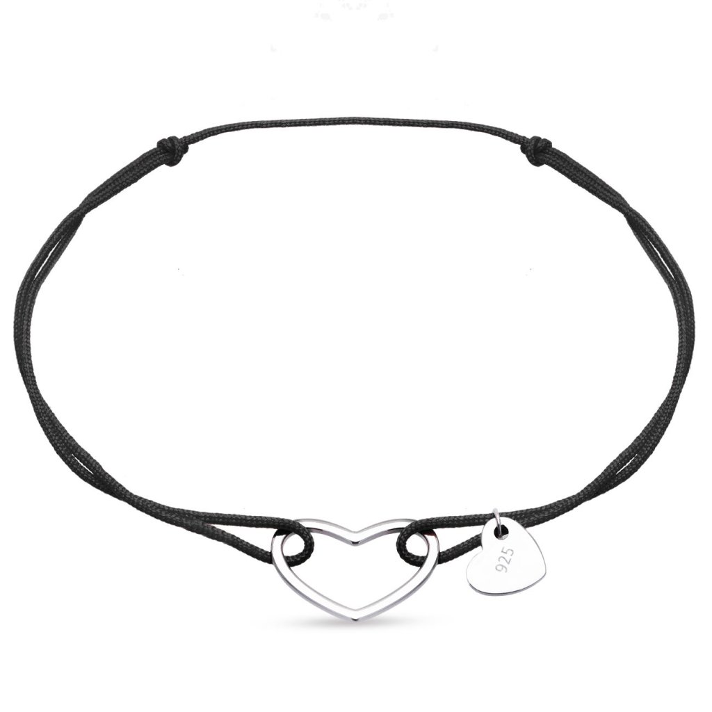 Egyszerű és stílusos kiegészítő minden napra – ez a karkötő fekete textilzsinórt kombinál egy finom szívvonallal, amely Ag 925/1000 ezüstből készült. A szív szimbólum a szeretetet, a közelséget és a harmóniát képviseli, míg a karkötő fekete színe elegáns és időtálló hatást kelt.